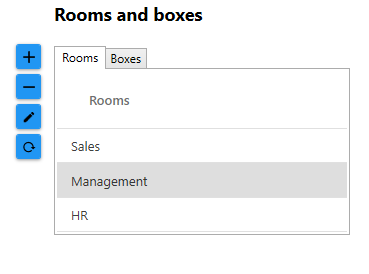 Mit den Icons auf der linken Seite können sie Räume erstellen, löschen und bearbeiten.