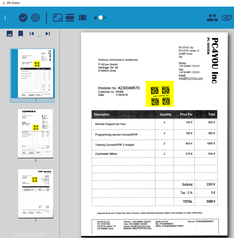 Die Briefe sind eingegangen und es wurde auf der ersten Seite der IPA-Stempel aufgebracht. Die Dokumente sollen automatisch getrennt werden und in einzelne durchsuchbare PDF Dateien abgelegt werden. In der Ablage soll ein Unterordner mit Jahreszahl Bindestrich Monat automatisch erzeugt werden.