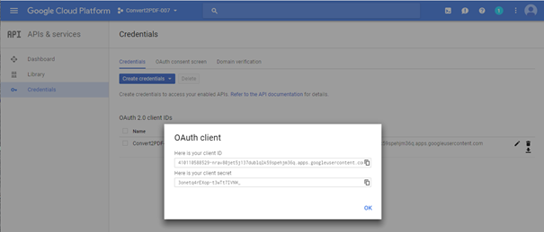 Bitte kopieren Sie alle Werte in einen Editor und fügen Sie diese Werte naher bei dem IPA-Server zur Google Drive Authentifizierung ein.