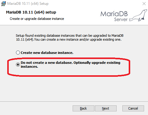 Nach der Installation der neuen MariaDB müssen sie nur noch in der Registry einen Wert für die neue Version der Datenbank manuelle anpassen!