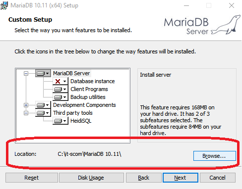 z.B. C:it-scomMariaDB 10.11 (Die Versionsnummer abhängig von der Installation)