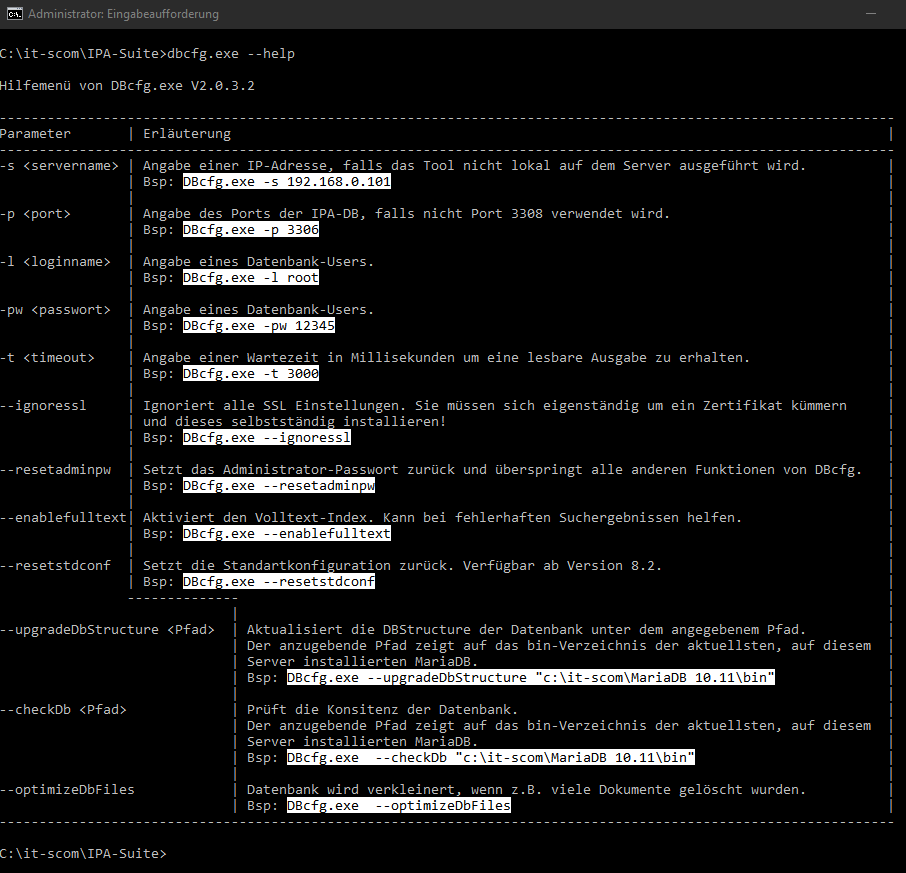 C:it-scomIPA-Suite>dbcfg.exe –-help